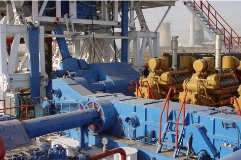 ◆ 機(jī)械鉆機(jī)是柴油機(jī)驅(qū)動(dòng)用鏈條箱并車(chē)后驅(qū)動(dòng)絞車(chē)和泥漿泵,通過(guò)爬臺(tái)萬(wàn)向軸驅(qū)動(dòng)轉(zhuǎn)盤(pán)鏈條箱帶動(dòng)轉(zhuǎn)盤(pán)。