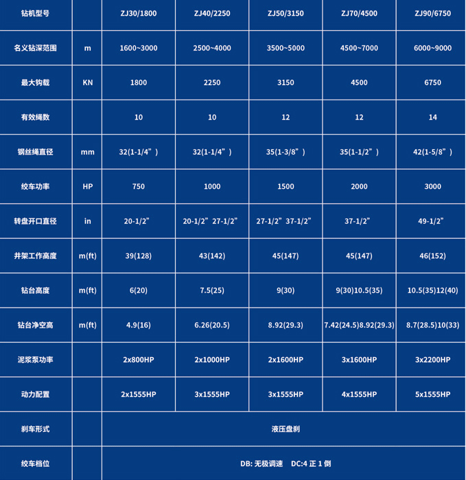 ◆ 絞車(chē)有4正2倒檔,配有液壓盤(pán)剎,配置有司鉆房,改善司鉆的工作環(huán)境,減輕了勞動(dòng)強(qiáng)度。